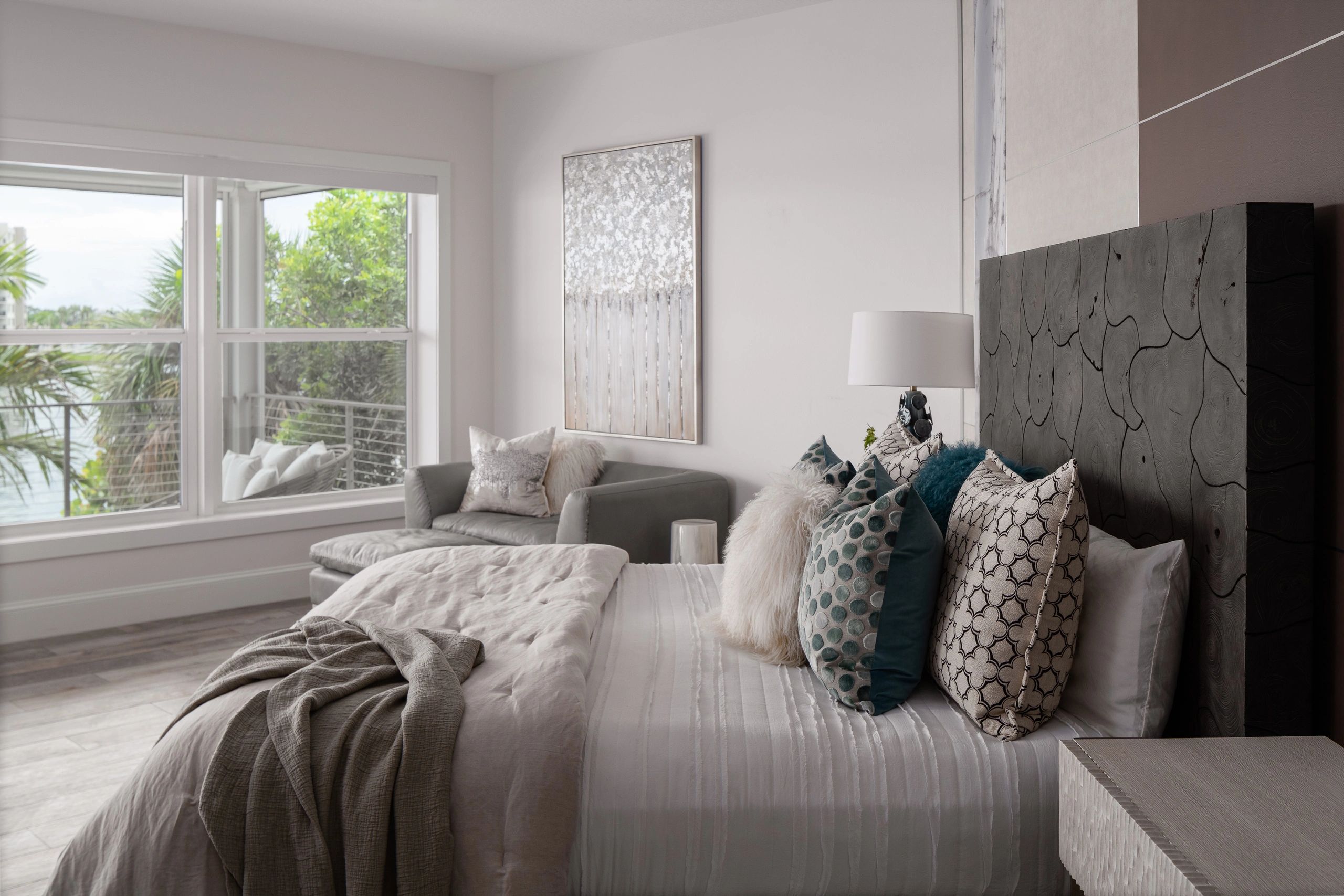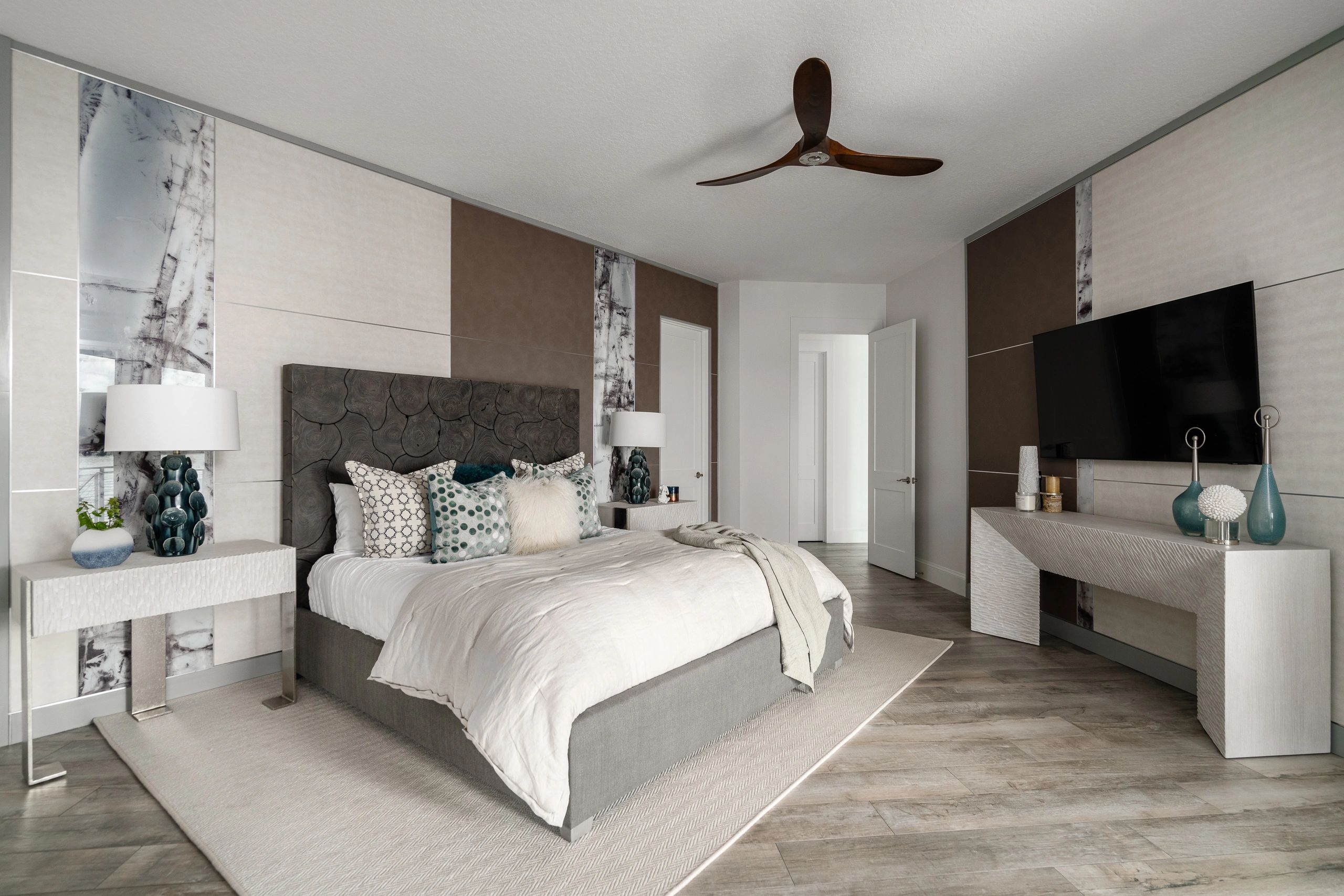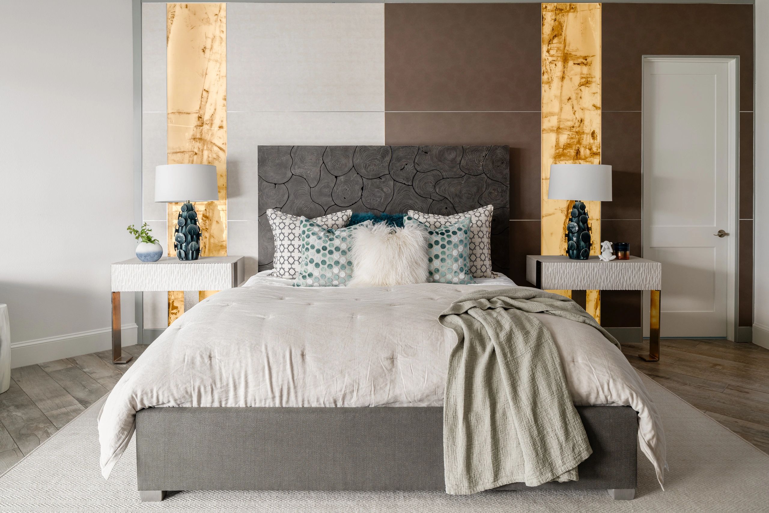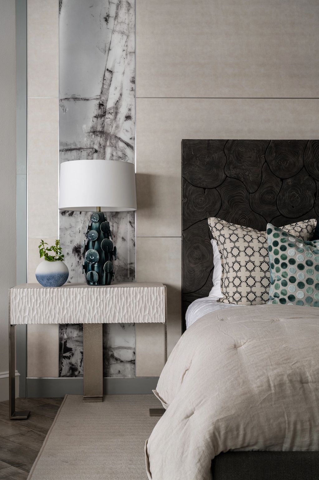 This ultimate master bedroom retreat was completed by adding textures and organic modern furnishings.