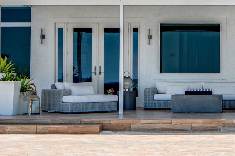 We selected long lasting and low maintenance materials that can stand up to wind, rain, salt and sun in coastal areas. Concrete furniture provided a combination of strength and freedom of appearance. To achieve the rich look of a wood deck we selected tahoe ocre wood porcelain tiles that not only are durable, easy to maintain and clean, but also are environmental friendly.